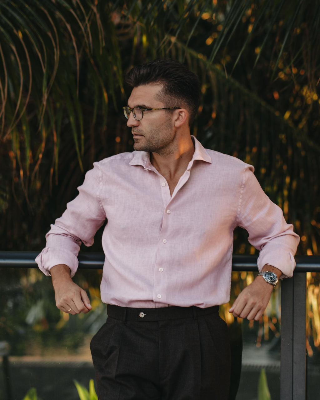 Unsere Hemden haben einen geraden, wenn überhaupt „leicht“ antaillierten Schnitt. Leinen ist ein Material, das du lockerer und mit etwas mehr Bewegungsfreiheit trägst, um der Lässigkeit des Materials gerecht zu werden.