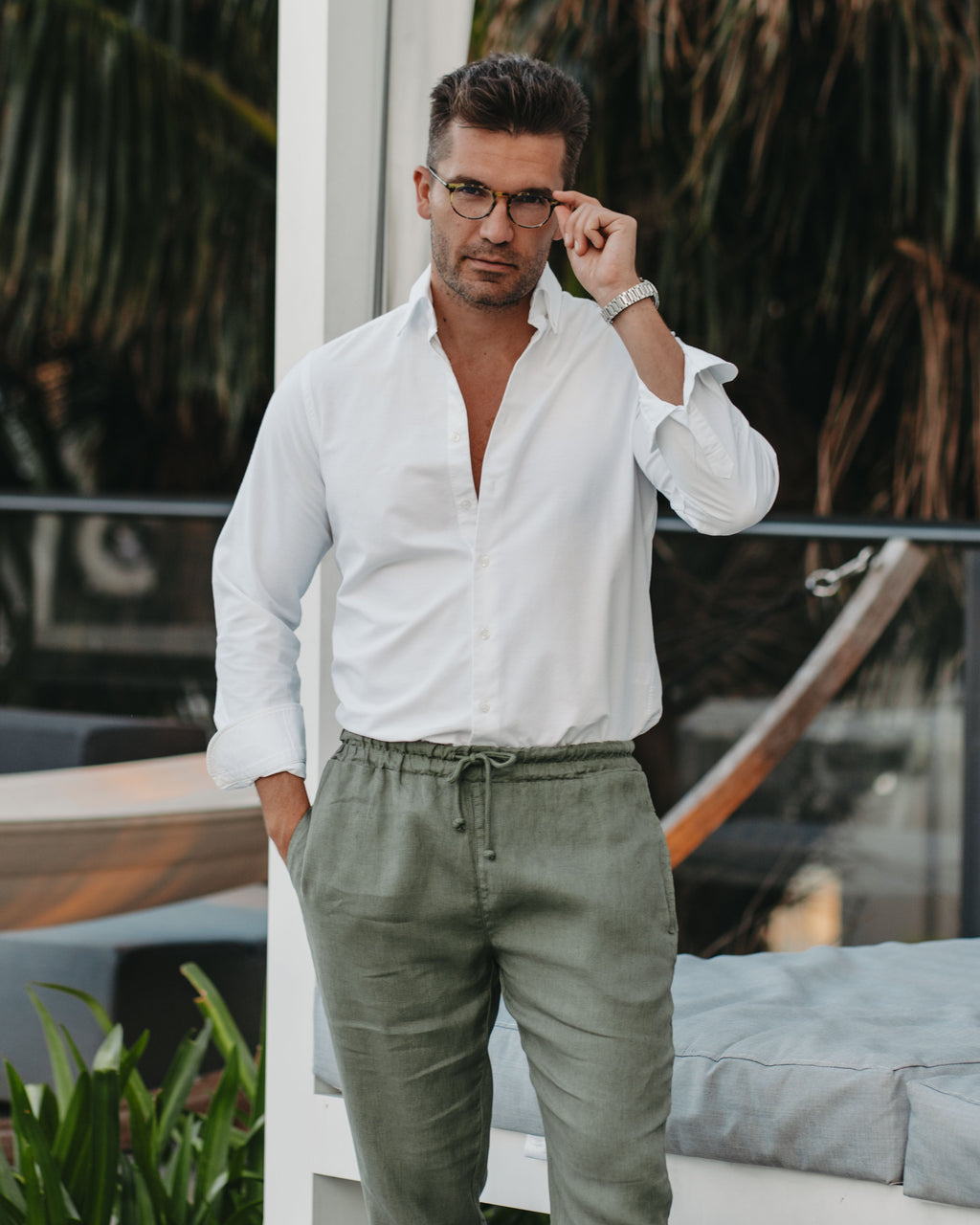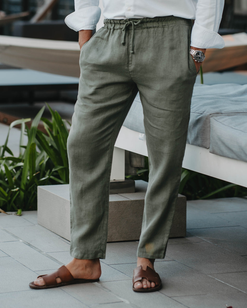 Vielen Hosen mangelt es entweder an Stil oder Komfort. Mit unserer Leinenhose greifen wir genau diese Aspekte auf, denn sie ist nicht nur vielseitig kombinierbar, sondern fühlt sich durch das geringe Gewicht und die besondere Stoffstruktur auch luftig leicht an. Leinen ist bekannt für seine Robustheit und Atmungsaktivität, was die Hose zu einem perfekten Basic-Piece für heiße Sommertage macht.