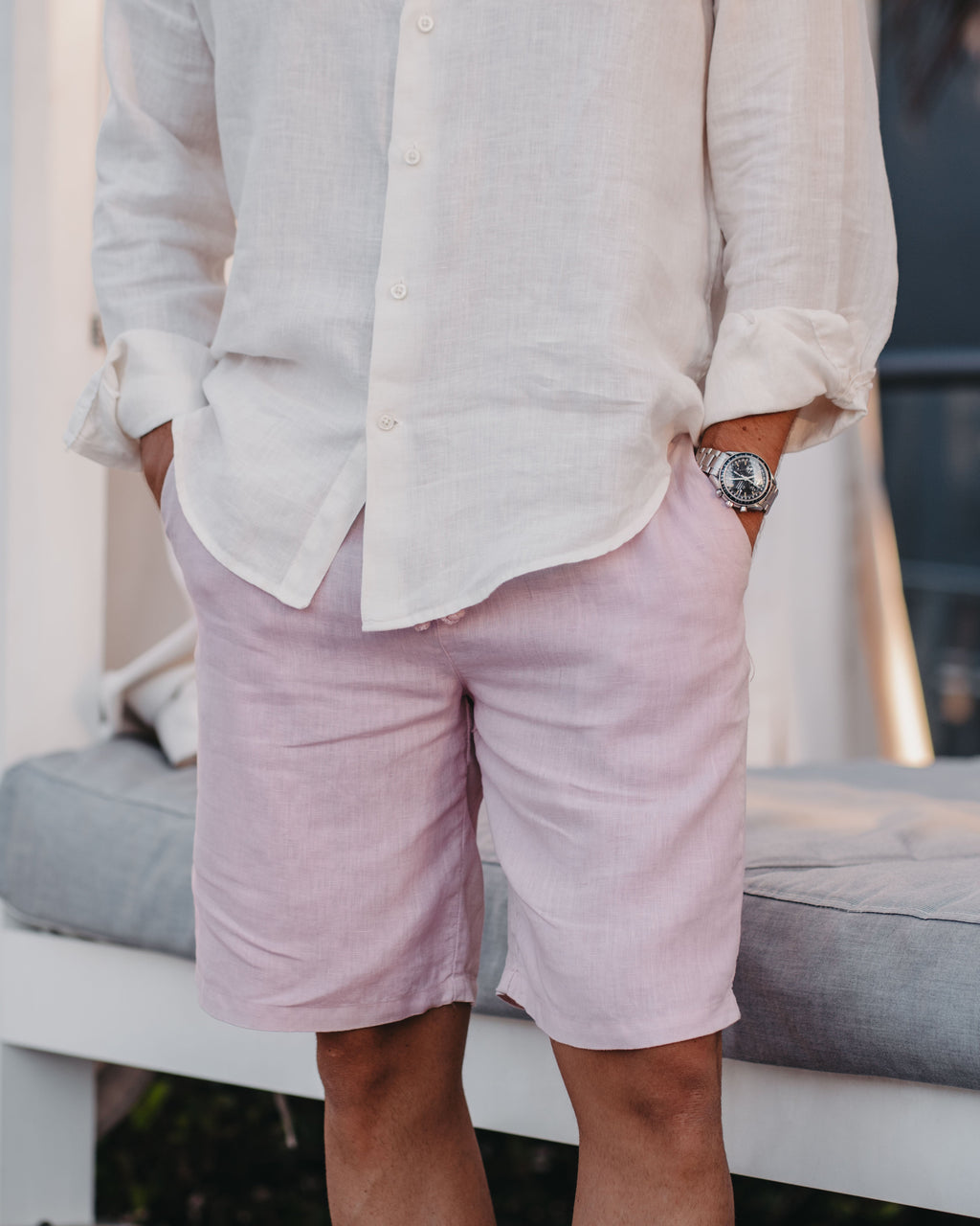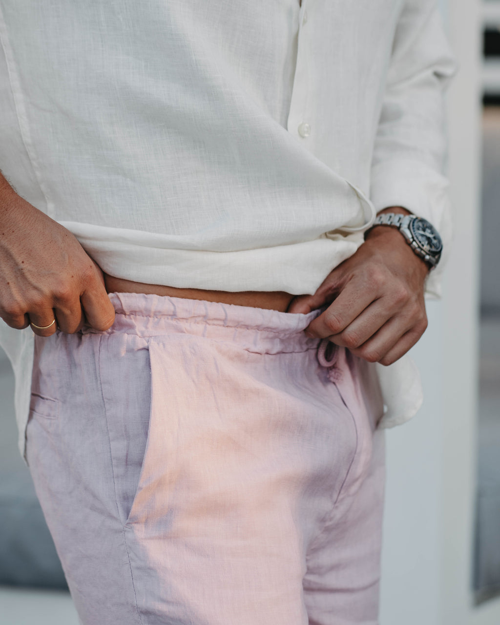 Wer das leichte Tragegefühl von Badehosen mag, wird unsere kurze Leinenhose lieben! Vielen kurzen Hosen mangelt es entweder an Stil oder Komfort. Mit unserer Leinenhose greifen wir genau diese Aspekte auf, denn sie ist nicht nur vielseitig kombinierbar, sondern fühlt sich durch das geringe Gewicht und die besondere Stoffstruktur auch luftig leicht an. Leinen ist bekannt für seine Robustheit und Atmungsaktivität, was die Hose zu einem perfekten Basic-Piece für heiße Sommertage macht.